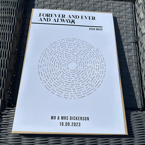 Custom Vinyl Lyrics Print - Personalised Music Poster - Customisable Music Gift - Anniversary Gift - Wedding Song Print