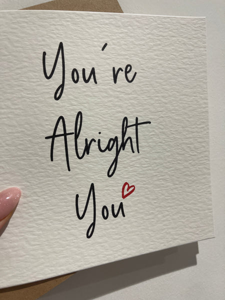 You're Alright You Valentines Day Funny Humorous Hammered Card & Envelope
