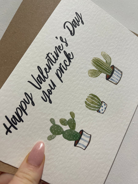 You Prick Cactus Valentines Day Funny Humorous Hammered Card & Envelope