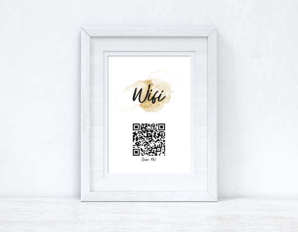 Personalised Wifi Gold Splatter Splatter Scan Me! Wifi QR Scan Home Wall Decor Print