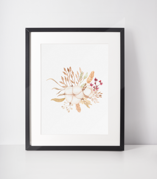 Dried Floral Cotton Bouquet Autumn Seasonal Wall Home Decor Print